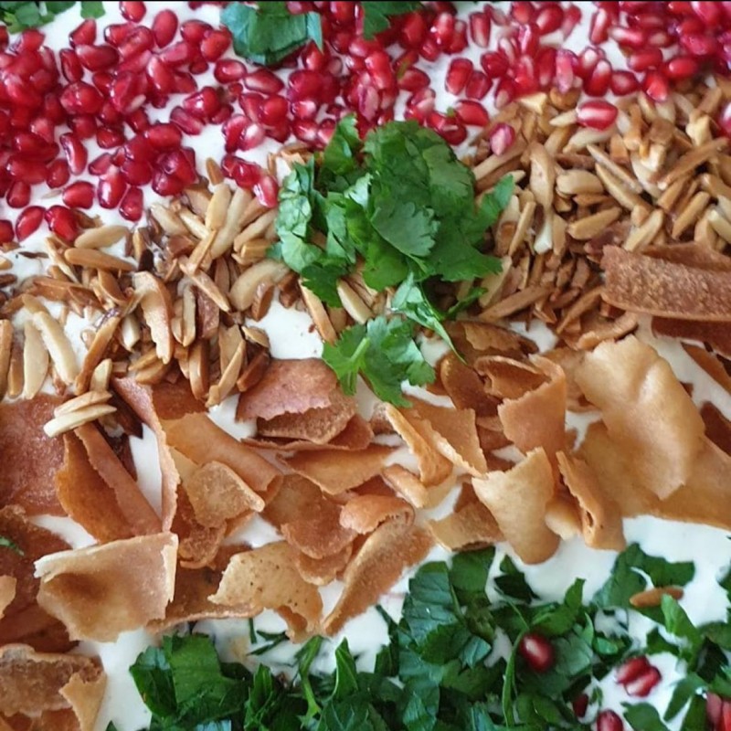 pürierte Kichererbsen, Sesamsoße und Yoghurt